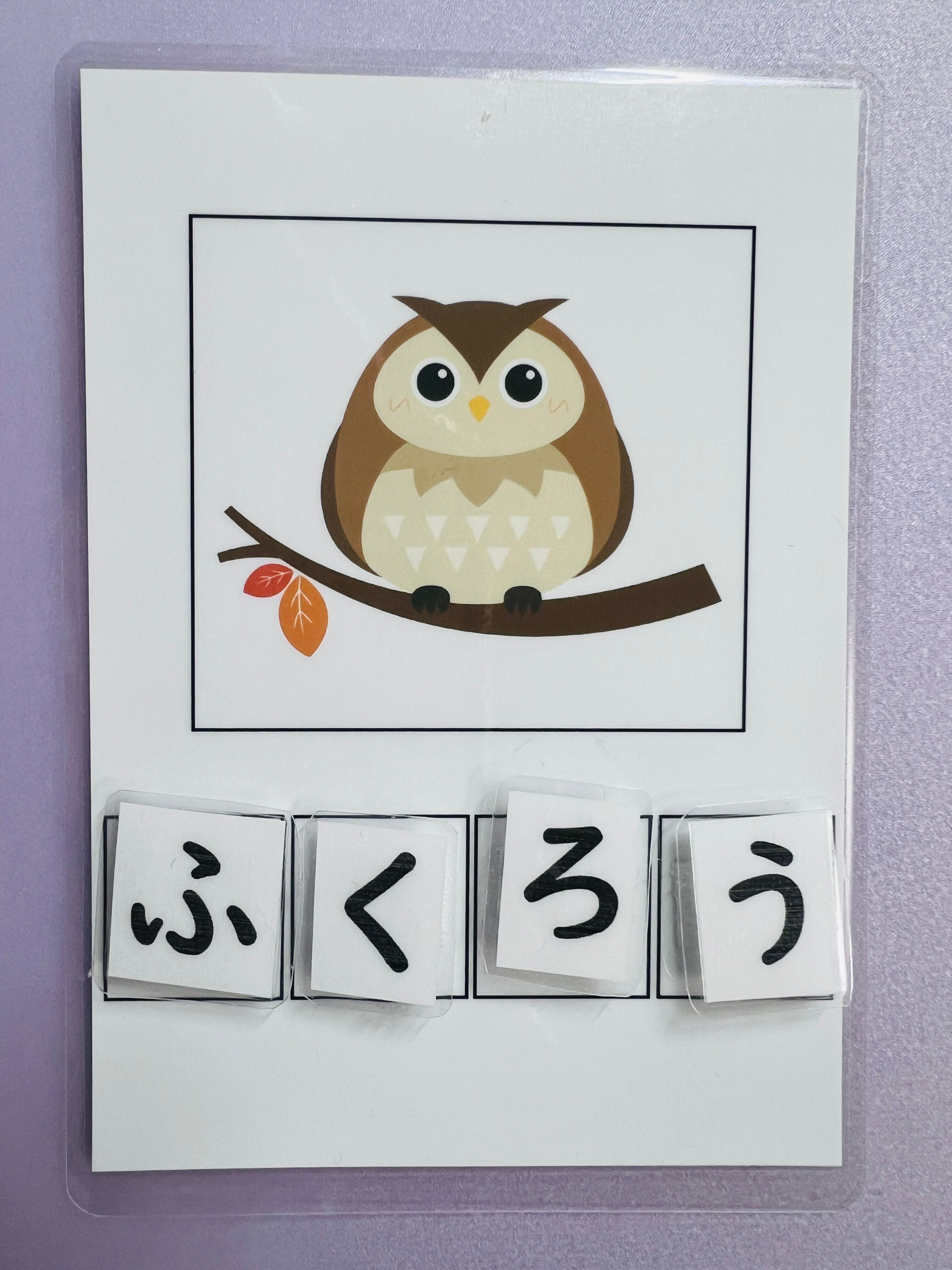 【ふくろう】ぺったんカード ひらがな